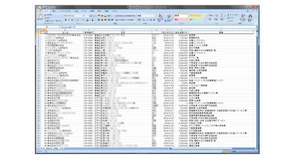 詳細リストの提供項目には、法人の設立目的を参考に分類した業種、資本金、設立年月日、代表者名(苗字のみ)の付いた法人リストです。